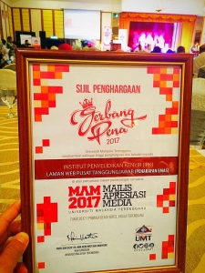 Penghargaan buat IPK di Majlis Apresiasi Media 2017, UMT pada 7 Mac 2017 di Primula Beach Hotel, Kuala Terengganu.